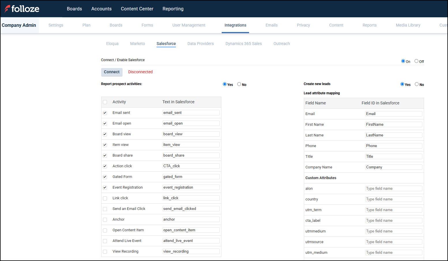 Folloze + Marketo - Connector Setup Guide 1.31KNumber of Views Folloze + Eloqua - Connector Setup Guide 679Number of Views Folloze + 6sense Connector - Integration Setup Guide 1.25KNumber of Views Folloze + Demandbase - Custom Fields Connector Setup Guide 522Number of Views Folloze + Salesforce - Account Dashboard Widget 367Number of Views